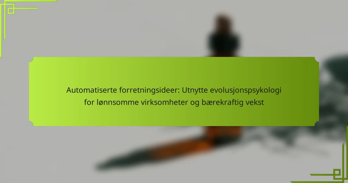 Automatiserte forretningsideer kan betydelig øke lønnsomheten og sikre bærekraftig vekst ved å utnytte innsikter fra evolusjonspsykologi. Å forstå menneskelig atferd forbedrer automatiserte markedsføringsstrategier, forbedrer brukeropplevelsen og fremmer merkevarelojalitet. Nøkkelprinsipper som sosialt bevis, knapphet og kognitive skjevheter kan drive kundedeltakelse og beslutningstaking. Entreprenører kan implementere disse strategiene for å skape skreddersydde opplevelser som resonerer med målgruppen deres.