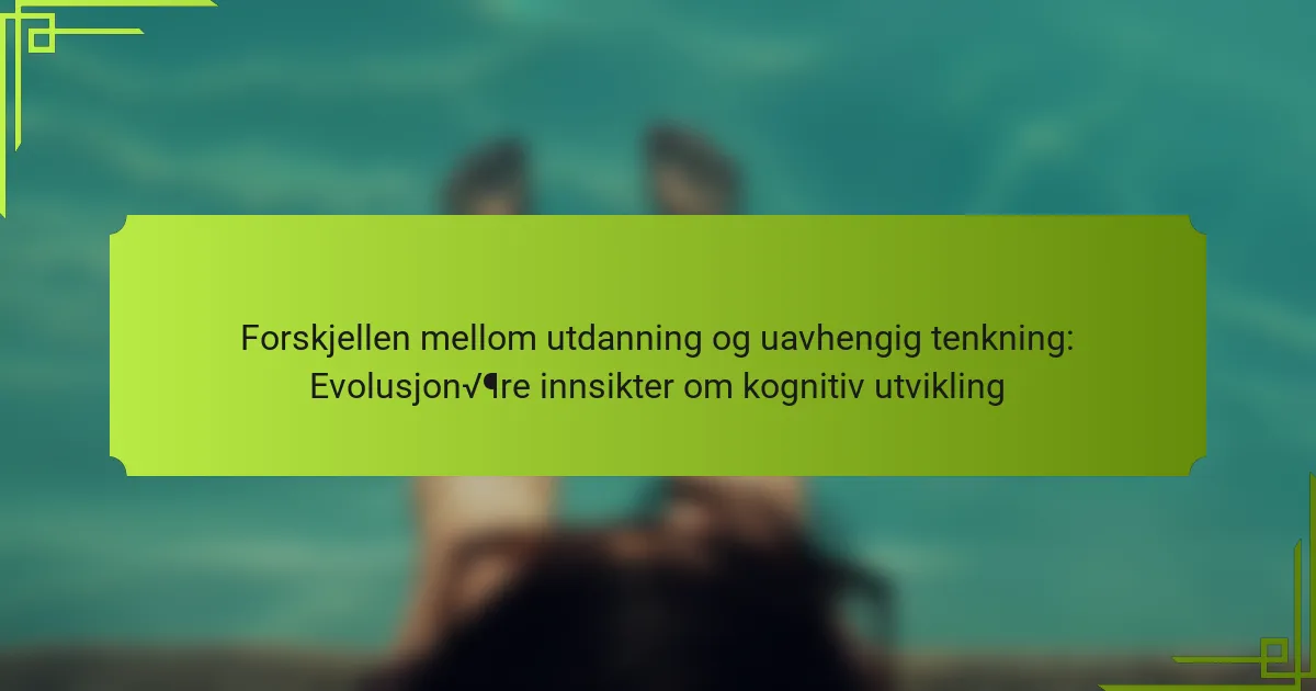 Å forstå forskjellen mellom utdanning og selvstendig tenkning er avgjørende for kognitiv utvikling. Utdanning forbedrer kritisk tenkning og problemløsningsevner gjennom strukturert læring. I kontrast fremmer selvstendig tenkning kreativitet og personlige innsikter gjennom selvstyrt utforskning. Denne artikkelen utforsker deres sammenheng, de unike egenskapene som skiller dem, og strategier for å fremme selvstendig tenkning innen utdanningsmiljøer.