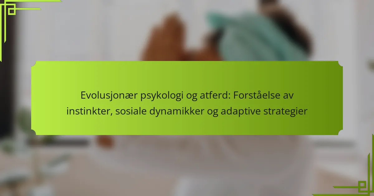 Evolusjonspsykologi undersøker hvordan menneskelig atferd formes av evolusjonsprosesser. Den fokuserer på instinkter, sosiale dynamikker og adaptive strategier som har utviklet seg over tid. Dette feltet antyder at mange atferder er forankret i forfedres overlevelsesmekanismer. For eksempel blir samarbeid og konkurranse sett på som adaptive strategier som forbedrer reproduksjonssuksess. Å forstå disse dynamikkene gir innsikt i moderne menneskelige interaksjoner og psykologiske trekk.