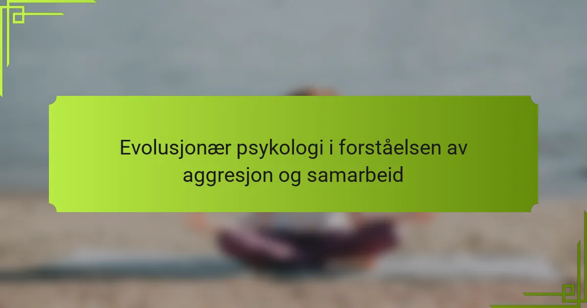 Evolusjonspsykologi forklarer aggresjon og samarbeid som adaptive atferder formet av naturlig utvalg. Aggresjon kan forbedre overlevelse ved å sikre ressurser, mens samarbeid fremmer sosiale bånd og gruppesuksess. Disse atferdene er forankret i evolusjonære fordeler som fremmer reproduktiv suksess. For eksempel kan samarbeidsvillige individer få hjelp i tider med behov, noe som øker sjansene for overlevelse. Unike egenskaper inkluderer variasjoner i aggresjonsnivåer basert på miljøfaktorer, mens sjeldne egenskaper kan involvere altruistiske atferder som gagner ikke-relaterte individer. Å forstå disse dynamikkene gir innsikt i menneskelig interaksjon og samfunnsstrukturer.