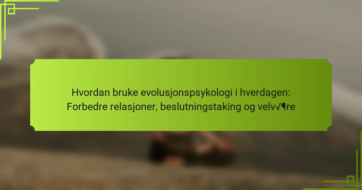 Evolusjonspsykologi påvirker beslutningstaking betydelig ved å fremheve medfødte atferdsmønstre formet av forfedrenes overlevelsesbehov. Å forstå disse tendensene kan forbedre personlige relasjoner og øke velvære. For eksempel kan det å gjenkjenne virkningen av sosiale hierarkier veilede individer i å navigere arbeidsplassdynamikk effektivt. I tillegg kan bevissthet om kognitive skjevheter forankret i evolusjonære tilpasninger føre til mer rasjonelle valg i hverdagen. Å integrere disse innsiktene fremmer bedre beslutningstaking, noe som til slutt øker den generelle livstilfredsheten.