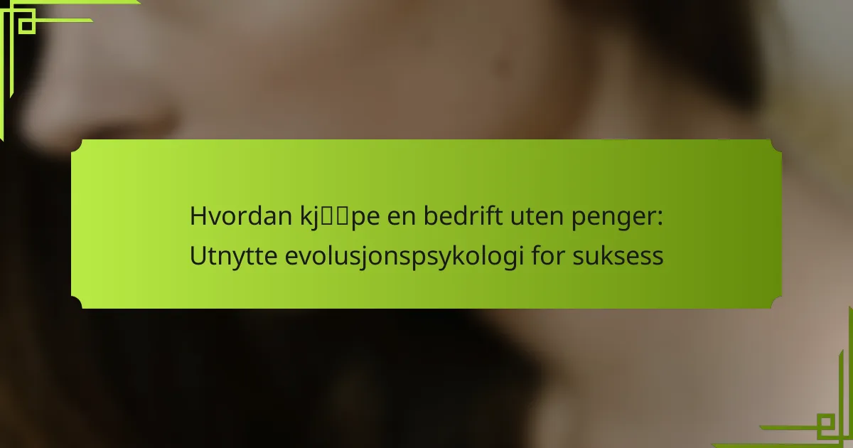 Å kjøpe en bedrift uten penger kan være en skremmende utfordring. Å forstå evolusjonspsykologi kan forbedre din oppkjøpsstrategi ved å utnytte menneskelig atferd. Å gjenkjenne psykologiske triggere kan skape overbevisende tilbud og fremme tillit med selgere. Å anvende disse prinsippene muliggjør innovative løsninger og effektive forhandlinger, selv med begrensede økonomiske ressurser.