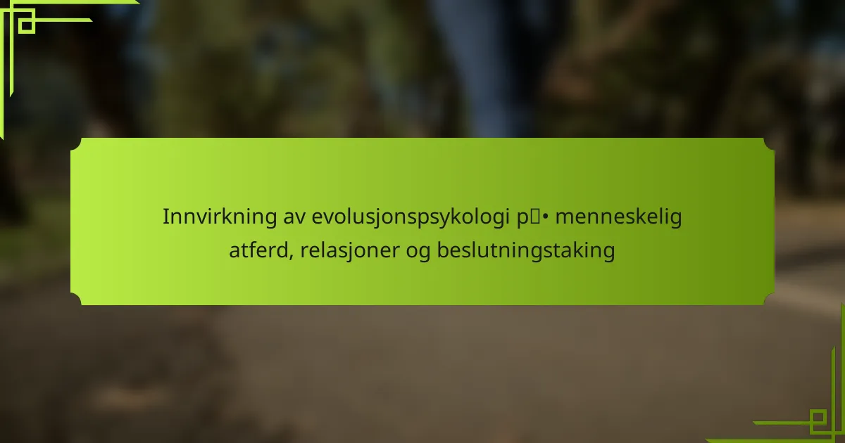 Evolusjonspsykologi former menneskelig atferd betydelig ved å påvirke relasjoner og beslutningsprosesser. Den antyder at mange atferder er tilpasninger til forfedres miljøer, som påvirker partnervalg, sosiale dynamikker og konfliktløsning. For eksempel prioriterer mennesker ofte egenskaper som vennlighet eller ressurssterkhet hos partnere, noe som reflekterer overlevelsesstrategier. Dette perspektivet avslører hvordan evolusjonære press kan føre til preferanser som vedvarer i moderne kontekster, og påvirker valg i både personlige og profesjonelle relasjoner. Å forstå disse påvirkningene kan forbedre mellommenneskelige interaksjoner og beslutningsstrategier.