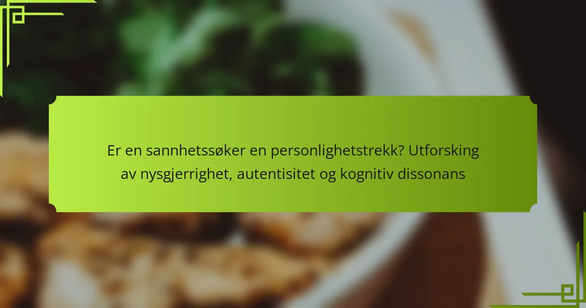 Ja, sannhetssøking kan anerkjennes som et personlighetstrekk. Det omfatter nysgjerrighet, autentisitet og evnen til å navigere i kognitiv dissonans. Sannhetssøkere viser ofte et sterkt ønske om kunnskap og forståelse, noe som fører dem til å stille spørsmål ved etablerte normer. Forskning indikerer at individer med høy grad av dette trekket har en tendens til å engasjere seg i åpenhjertig utforskning og kritisk tenkning. Dette unike trekket fremmer personlig vekst og forbedrer mellommenneskelige relasjoner, ettersom sannhetssøkere er mer tilbøyelige til å søke ekte forbindelser.