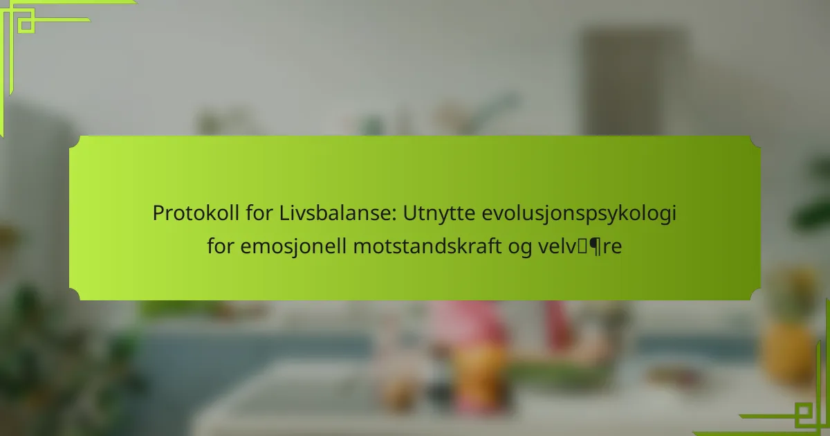 Å forbedre følelsesmessig motstandskraft er avgjørende for å navigere livets utfordringer. Protokollen for livsbalanse integrerer evolusjonspsykologi for å gi innsikt i adaptive følelsesstrategier. Den legger vekt på selvbevissthet, følelsesregulering og viktigheten av sosial støtte. Denne helhetlige tilnærmingen tilbyr praktiske skritt for personlig vekst og langsiktig velvære.