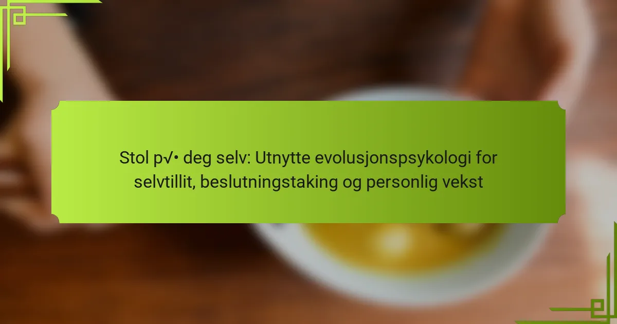 Å stole på seg selv er avgjørende for selvtillit og effektiv beslutningstaking. Evolusjonspsykologi avslører hvordan forfedrenes overlevelsesmekanismer påvirker selvtilit og personlig vekst. Å forstå kognitive skjevheter og sosiale instinkter forbedrer selvtilliten i beslutningstaking. Ved å dyrke selvbevissthet og omfavne utfordringer, kan enkeltpersoner utnytte disse innsiktene for motstandskraft og klarhet i å navigere personlige utfordringer.